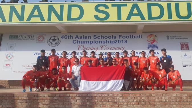 Liputan6.com, New Delhi - Indonesia mencatat prestasi pada turnamen sepak bola tingkat Sekolah Menangah Atas (SMA), 46th Asian Schools Football Championship 2018. Pada kompetisi di Agra, India, anak asuh Bambang Warsito mencapai final.