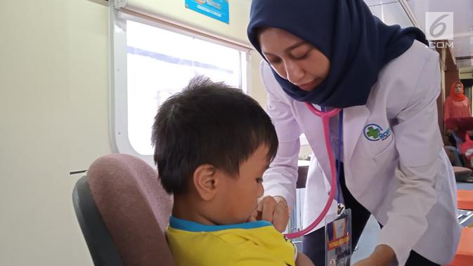 Rail Clinic PT KAI menggelar pengobatan gratis kepada ratusan warga saat berhenti di Stasiun Alastua, Semarang, Jawa Tengah, Kamis ( 28/3).