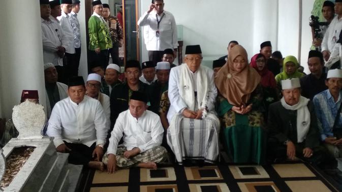Ma'ruf, ditemani istri,Wury Estu Handayani menyempatkan tahlil sejenak di makam Syekh Quro alias Syekh Hasanudin Bin Yusuf Sidik. Ketum MUI itu terlihat sangat khusyuk berdoa.
