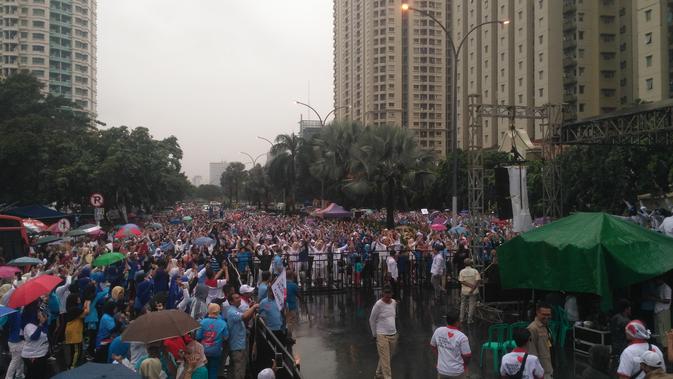 Liputan6.com, Jakarta - Ribuan massa pendukung pasangan nomor urut 02 Prabowo Subianto-Sandiaga Uno yang hadir dalam acara senam dan juga deklarasi di Bundaran Masjid Akbar, Kemayoran, Jakarta Pusat, kecewa. Penyebabnya, Prabowo yang diagendakan hadir dalam acara tersebut mendadak berhalangan hadir.