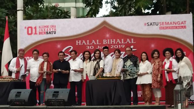 Liputan6.com, Jakarta - Relawan pendukung Jokowi-Ma'ruf yang tergabung dalam Alumni SMA Jakarta Bersatu (ASJB) mengadakan acara syukuran dan halalbihalal dengan mengusung tema 'Semangat Kebaikan' di Hotel Grand Kemang, Jakarta Selatan, Minggu (30/6/2019).