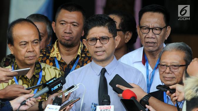 Wakil Ketua KPK Laode M Syarief memberikan keterangan pers usai pertemuan tertutup di gedung KPK, Jakarta, Rabu (31/07/2019). Pertemuan membahas pemilihan Rektor UNJ periode 2019-2023 dan meminta KPK mengawasi proses pemilihan tersebut. (merdeka.com/Dwi Narwoko)