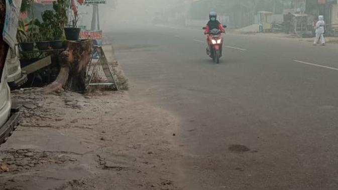 Senin (23/9) dini hari hujan sempat mengguyur Pontianak, Kalimantan Barat. Namun hujan tidak langsung menghilangkan kabut asap di kota tersebut.