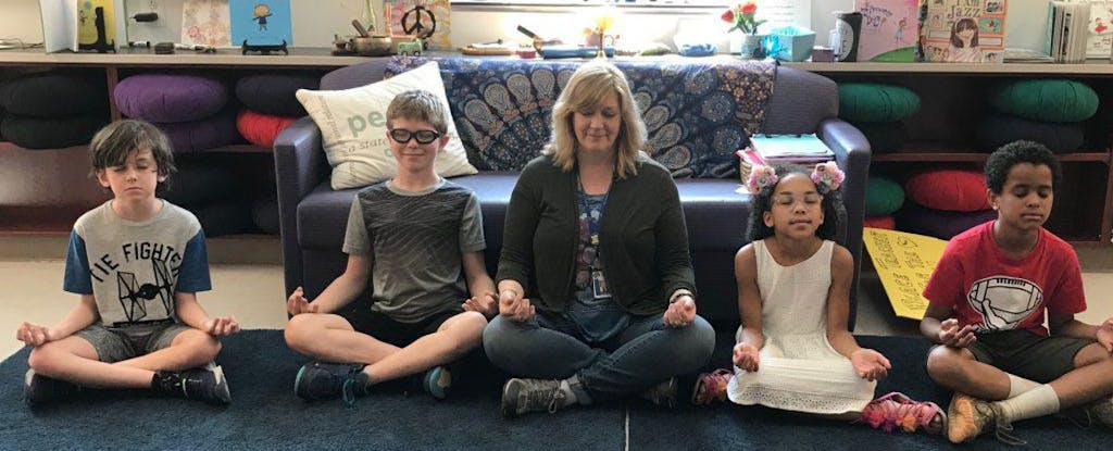 I was not a meditator back then. I knew a little about meditation and mindfulness but I didn’t think it was for me. But as I was searching for ways to help my students I kept reading about mindfulness—in particular, breathing strategies that can calm us down in the moment. There isn’t much research about its impact on students, yet, but what is out there appears promising. The more I read the more I started to think that this was exactly the step that was missing from my conflict resolution lessons. So I spent a summer learning about mindfulness and starting my own practice.