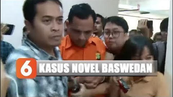 Liputan6.com, Jakarta - Memakai baju tahanan dan tangan terborgol, dua tersangka penyiraman air keras terhadap penyidik Komisi Pemberantasan Korupsi (KPK) Novel Baswedan, Sabtu sore dipindahkan ke Bareskrim Polri.
