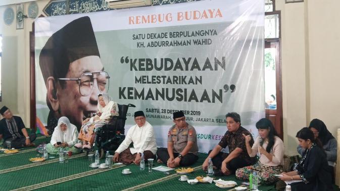 Liputan6.com, Jakarta - Keluarga Abdurrahman Wahid alias Gus Dur, menggelar peringatan haul satu dekade Presiden RI keempat itu. Haul digelar di Masjid Kami Al Munawarah, Jagakarsa, Jakarta, Sabtu (28/12/2019).
