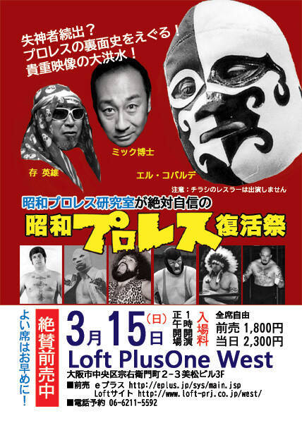 親愛なる昭和プロレスマニアに問う!諸兄らは、今回の『昭和プロレス復活祭』が挙行される3月15日について、これがどのように重要な日であるのを正しく認識しておられるのだろうか? そう、この日は、あのMSGの帝王アントニオ・ロッカが天に召された日なのだ!あ、いやいや。 そっちのほうじゃなくって、何と昭和プロレス研究室の唯一無二の公式準構成員である存 英雄の誕生日なのである。更に言えば、昭和プロレス研究室の室長のミック博士も3月生まれと来れば、これはもう「桜3月は昭和プロレスの月なり! 」と断言したところで、いささかの問題も生じまい。かくして地獄のバースデイバトルの幕は開くのである。 そんな晴れの記念日を血で染める『昭和プロレス復活祭』は、以下の驚愕の180分デスマ ッチ3本勝負が、ついに決定。 ■第1部/ミック博士の「昭和プロレスとアンダーワールドの素晴らしき世界」 ■第2部/存 英雄の「世界で発見!こんなところに日本人レスラー」探求篇 ■第3部/ミック博士のマガジン51号発刊記念「激レア映像」篇 各コーナーの詳細は無粋なネタばらしにつながるゆえ明かせぬが、当日は、昭和プロレス 研究の聖地LOFT plunone westが興奮のるつぼとなることは間違いなし!さぁ今こそ、全関西の昭和プロレスファン達よ、トーク&映像ショー『昭和プロレス復活祭』のもとに馳せよ、そして狂え! (注)上記の文章にはプロレス特有の誇大表現やファンタジー情報が含まれています。"親愛なる" - Google ニュース