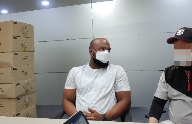 | 로하스(가운데)가 3일 수원 KT위즈파크서 인터뷰를 하고 있다. /사진=한동훈 기자 |