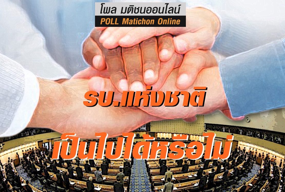 “มติชนออนไลน์” เชิญผู้อ่านร่วมแสดงความคิดเห็นเรื่อง มีกระแสข่าวเรื่องการจัดตั้งรัฐบาลแห่งชาติ ที่รวมเอาพรรคการเมืองทุกขั้วมารวมกัน เพื่อร่วมแก้วิกฤตชาติ
