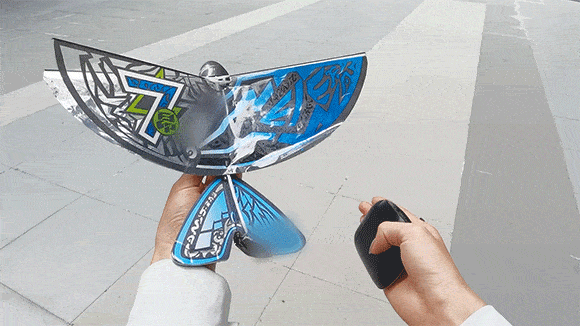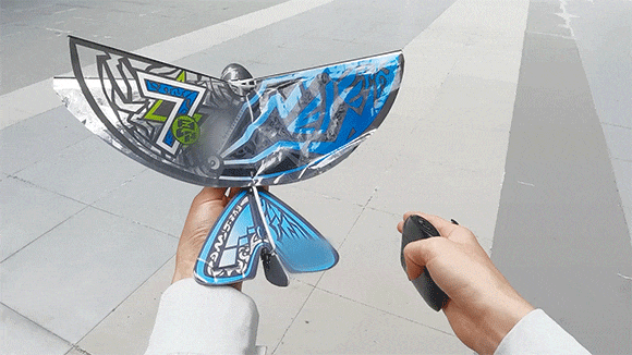 この新しい鳥ドローンのコントローラーは、片手で簡単に操作できます。