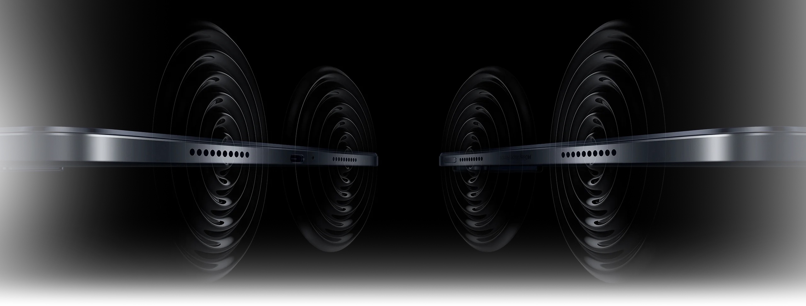 本体の四隅に配置された大口径(16mm×20mm、1.8cc)のクアッドスピーカーを備え、Dolby Atmosやハイレゾ音源をサポートし、臨場感のある映像やゲームなどのコンテンツを楽しめるとのこと。3.5mmイヤホンマイク端子は非搭載で、充電・外部接続端子はUSB Type-C(USB 3.2 Gen 1)となっており、急速充電はXiaomi Pad 6が最大33W、Xiaomi Pad 6 Proが最大67Wとのこと。